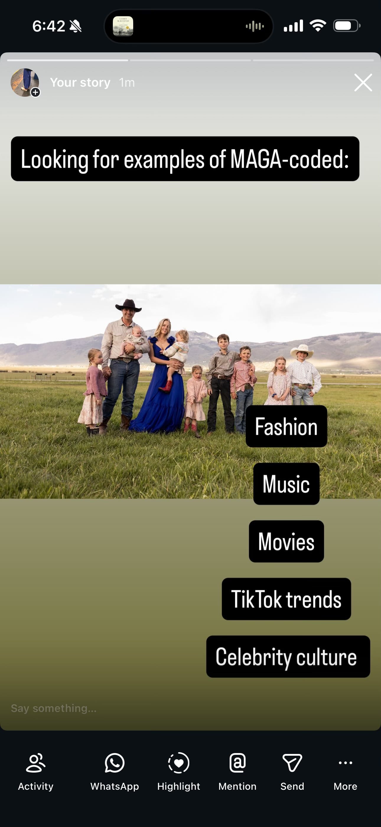 Last week, while trying to sculpt some nebulous feeling into a grandiose and finely articulated idea that I could shoehorn into an article I was writing, I leaned on my internet friends. I was trying to wrap my head around the MAGA-fication of our entire culture—you know, trad wives, beef tallow, the fact that every Sally Rooney girlie I know is a newly obsessed with Lonesome Dove, Larry McMurtry’s 1985 Texas Rangers masterpiece (I’m almost done, and yes, it is a masterpiece, and yes I am a cliche). I asked my digital friends to chime in with other examples.